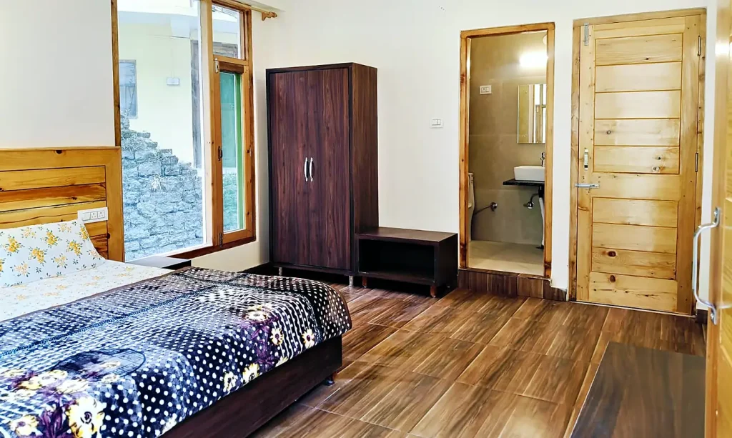 Step out onto your private balcony for breathtaking Himalayan panoramas, sink into a luxurious king-size bed dressed in soft linens, and relax within thoughtfully designed interiors that blend comfort with creative tranquility.